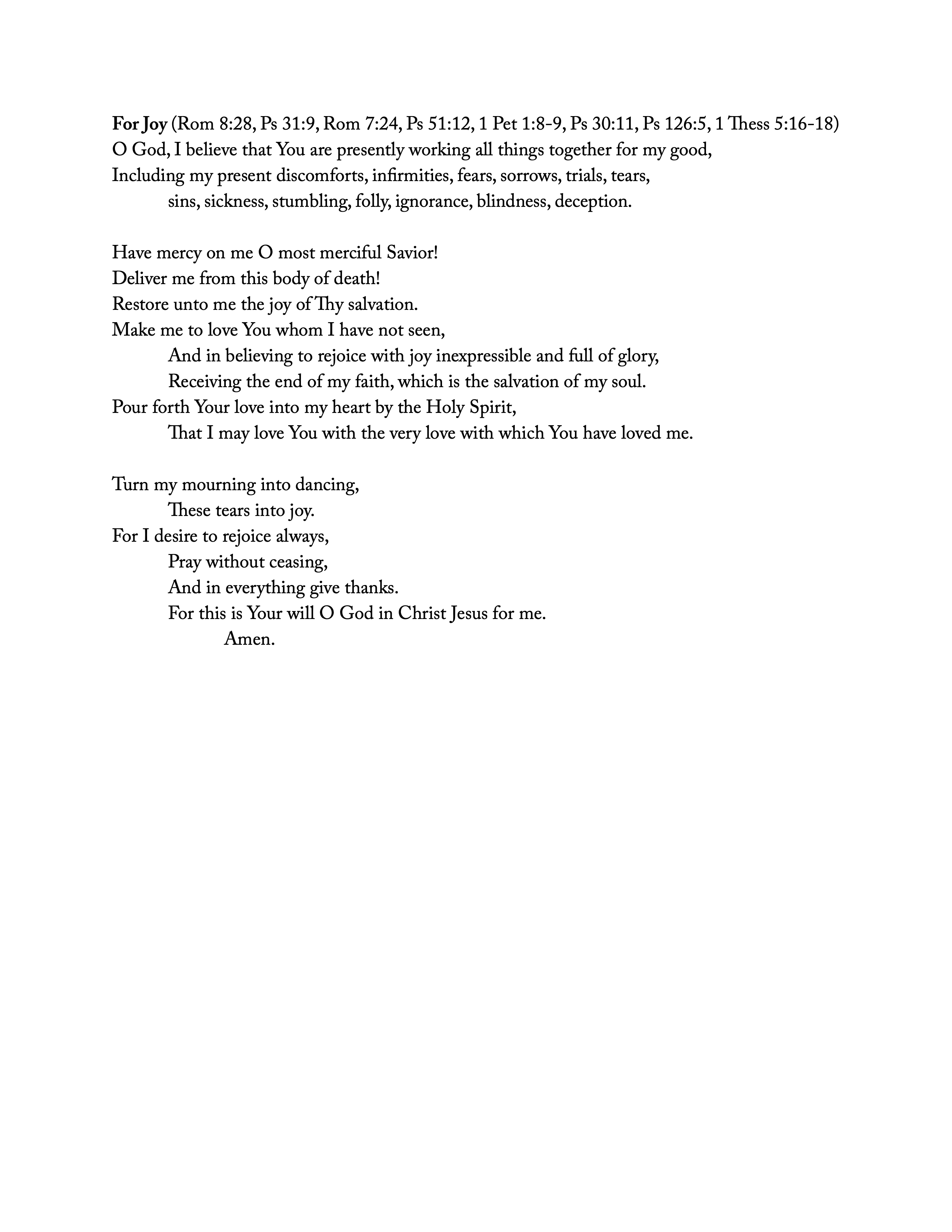 For JoyThe Pastor's Prayer BookAaron VenturaNov 03, 20252ShareIn this prayer I interpolate many passages of Scripture to give expression to that desperate yearning of our hearts for permanent joy in a transient world. As always, I encourage you to download the file, print it out, and make this prayer your own.PreviousNext